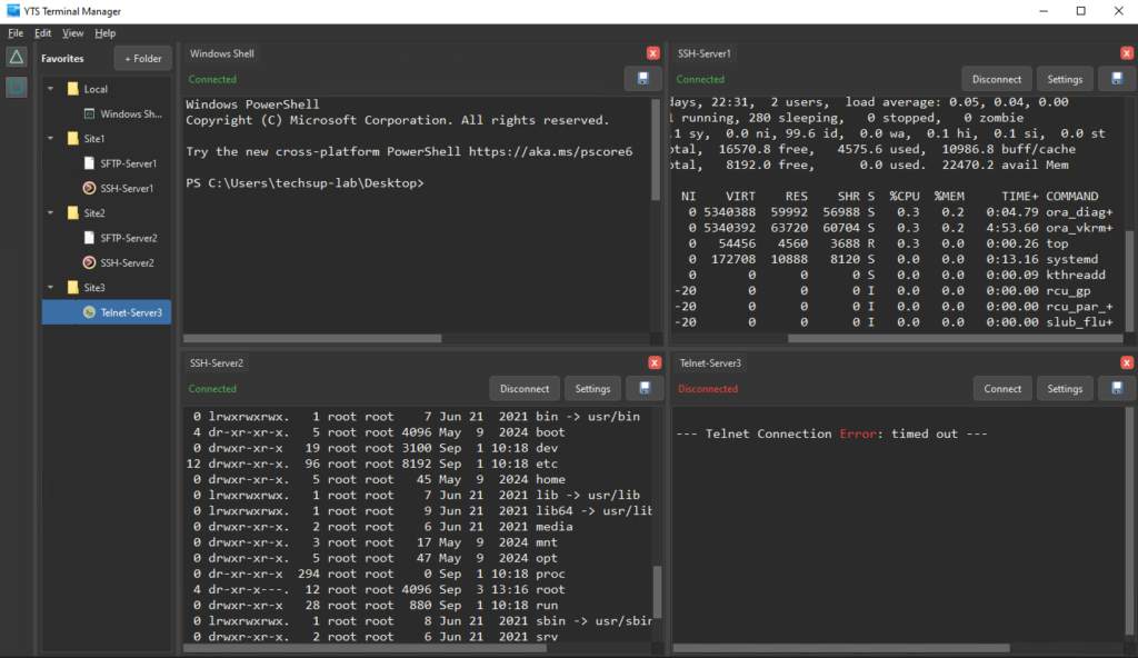 The YTS Terminal Manager is an advanced, all-in-one terminal management solution built specifically for Windows PCs. Designed for network engineers, system administrators, developers, and power users, this tool provides robust support for a wide range of communication protocols and terminal types—all in a single, easy-to-use desktop application.